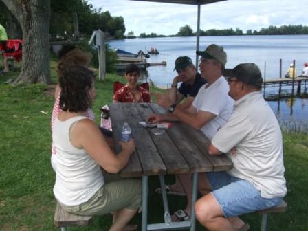 Having a game of cards with our friends. Where am I? Oh, yes, I am the camera 'man!'